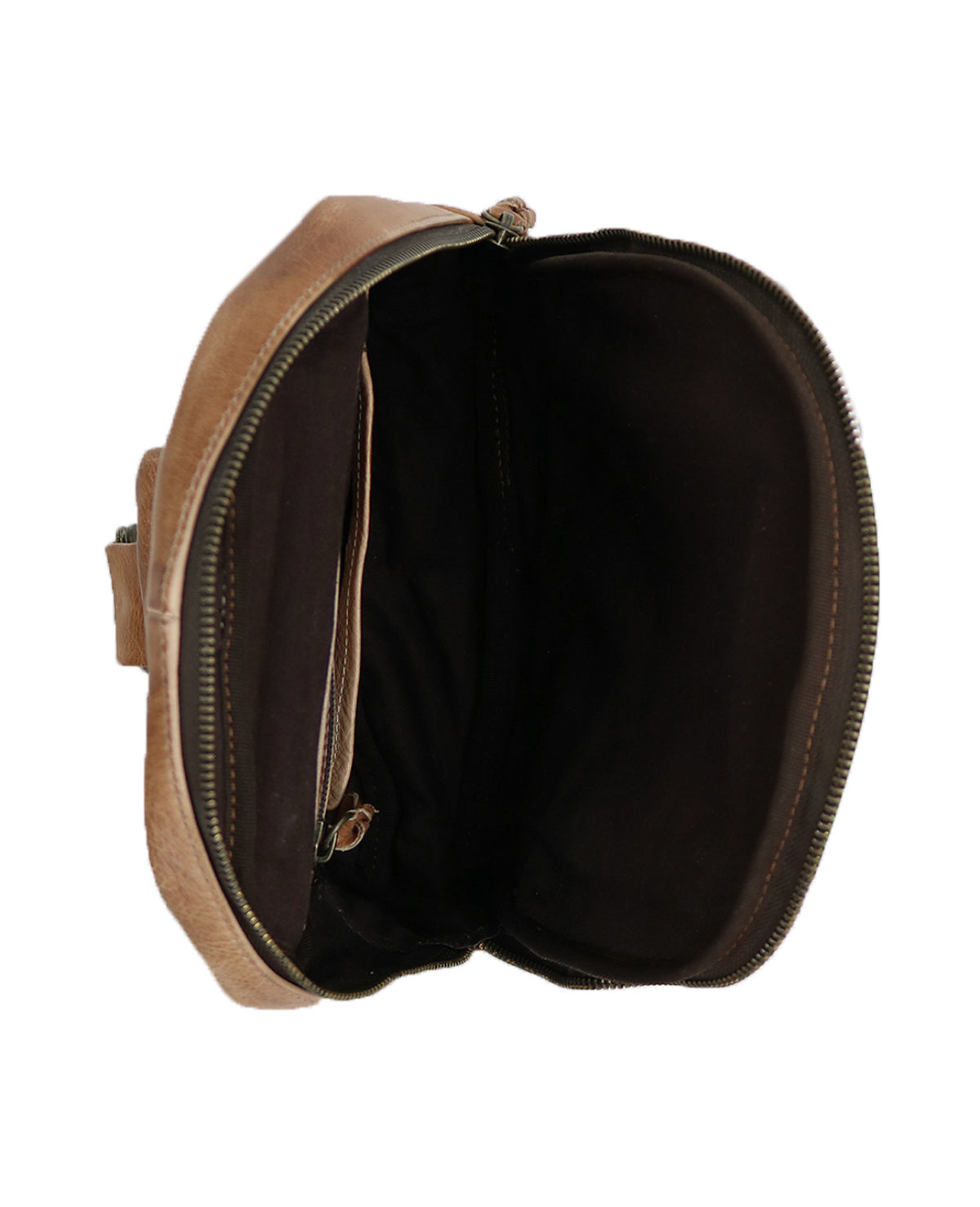 • One arm, sling leather backpack with adjustable fabric strap