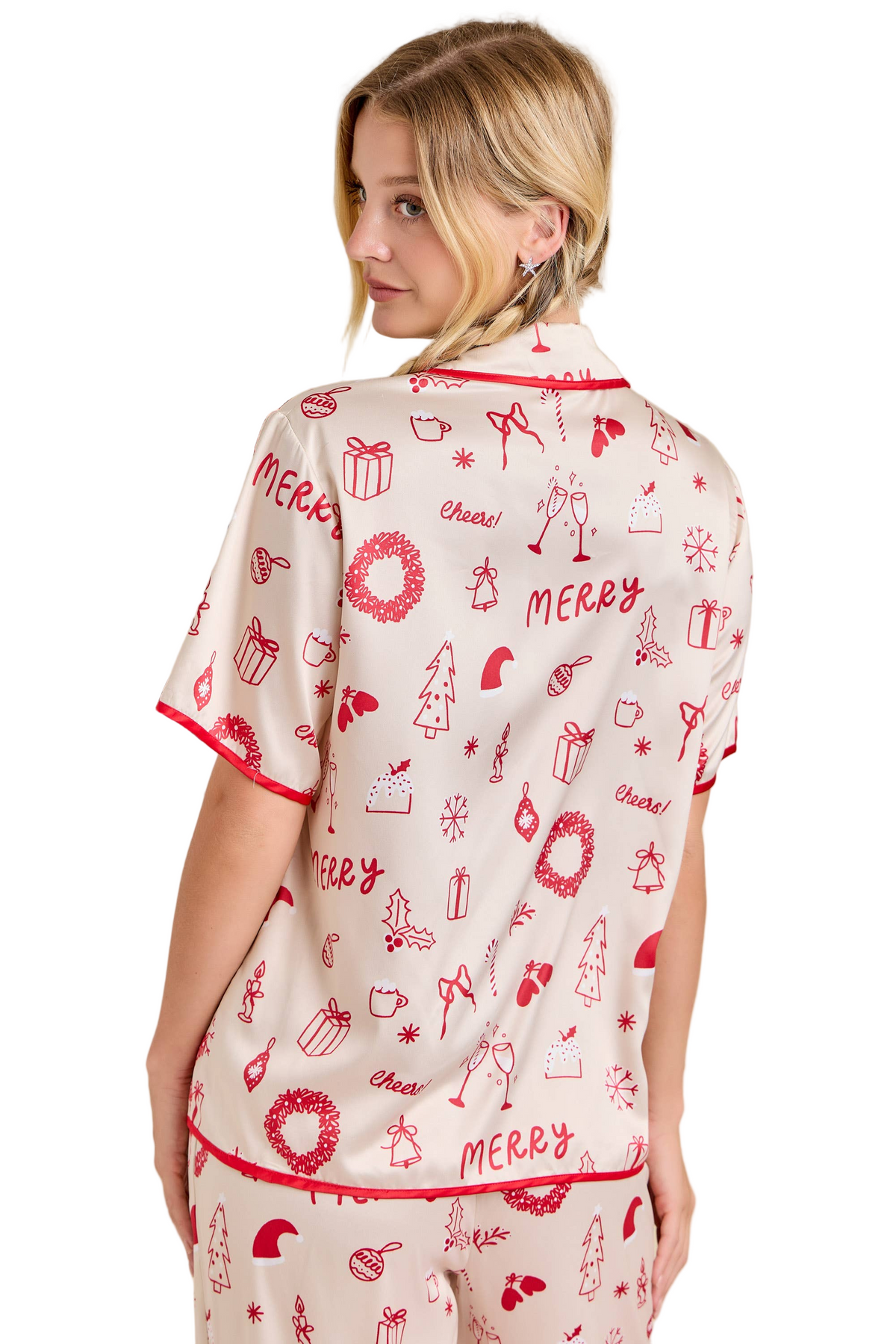 Cream Holiday Print Pajama Set – Festive Sleepwear