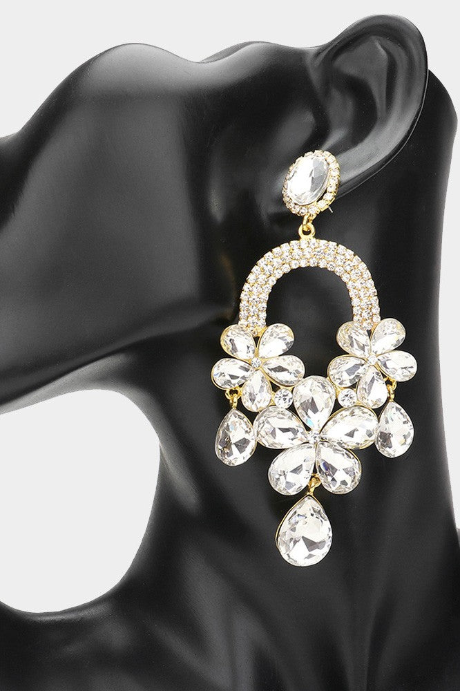 Flower Embellished Chandelier Dangle Earrings
