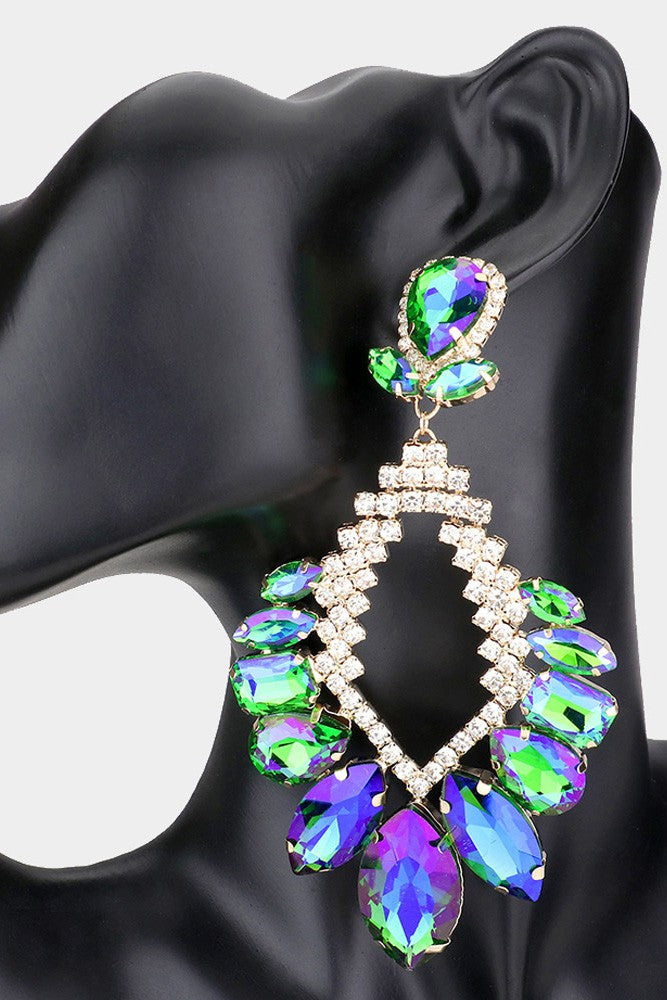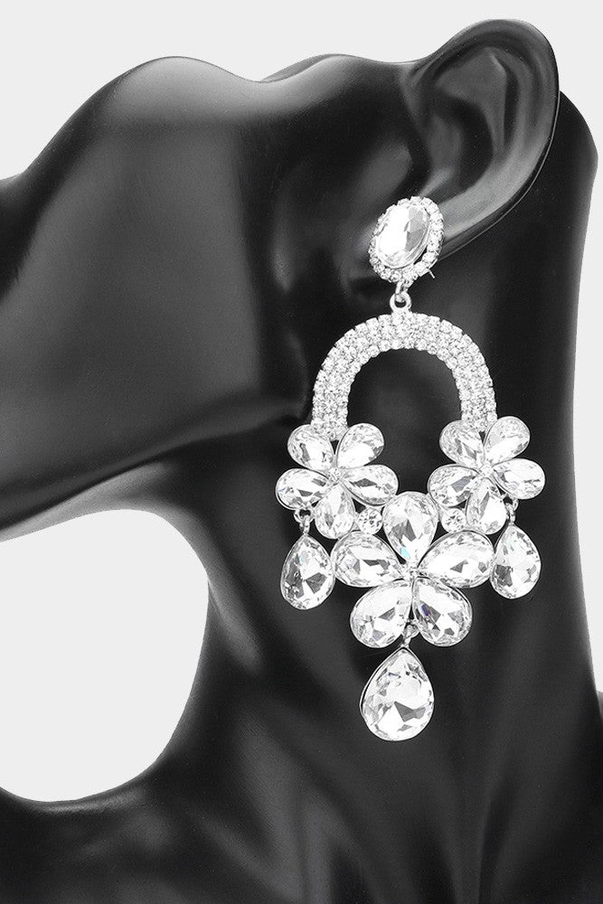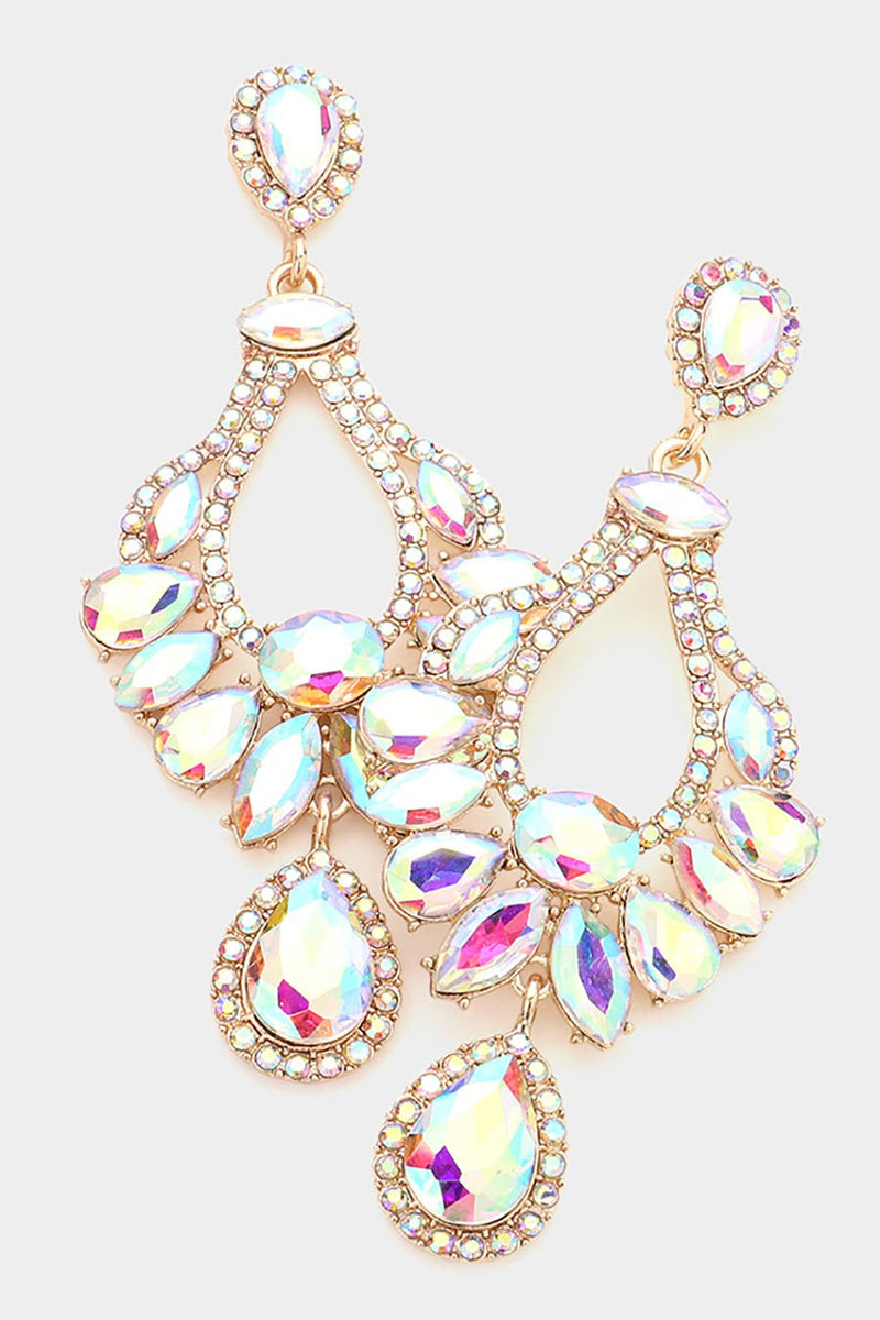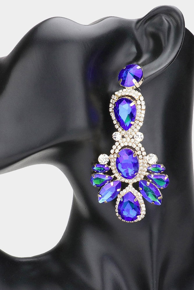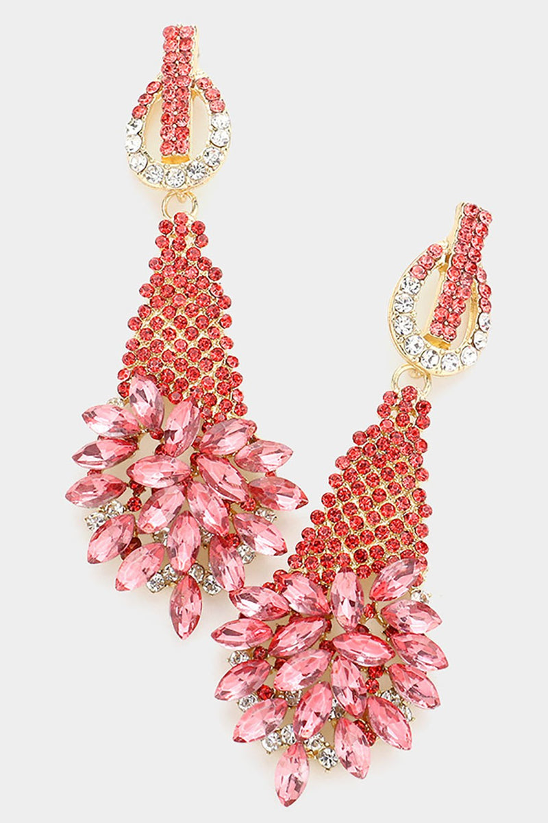 Teardrop Stone Cluster Embellished Dangle Evening Earrings