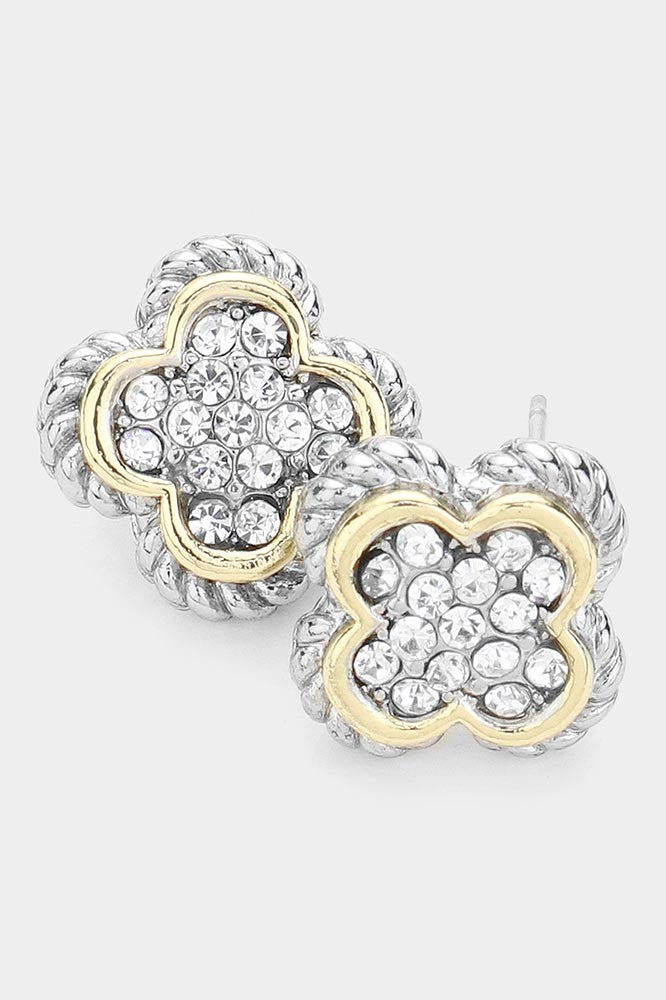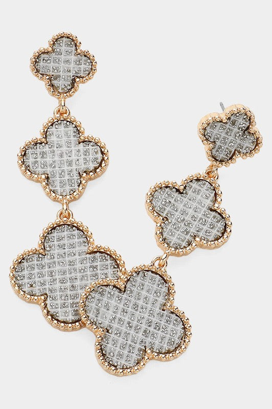 Triple Stone Paved Quatrefoil Link Dropdown Earrings