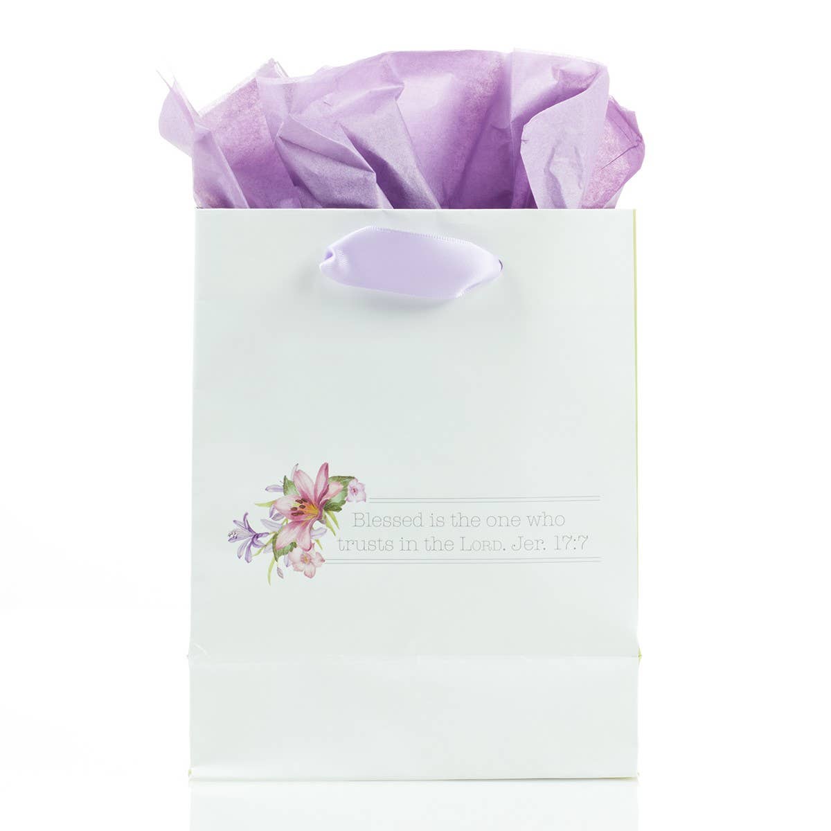 Gift Bag SM White/Purple May Your Day Be Blessed Jer. 17:7