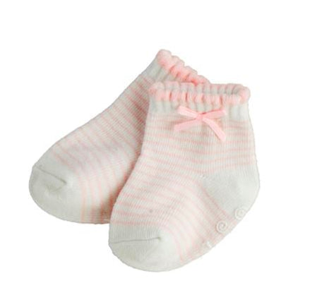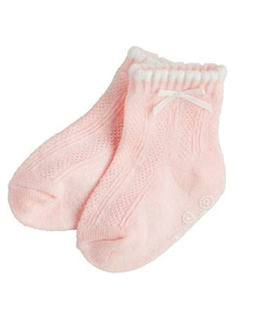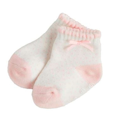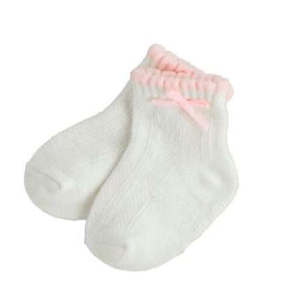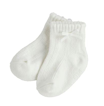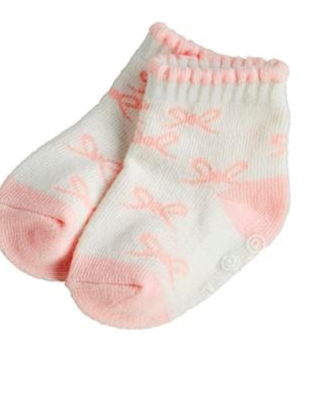 Cotton hosiery or pointelle infant socks with grosgrain bow.