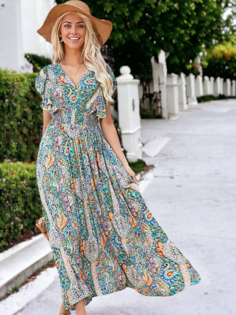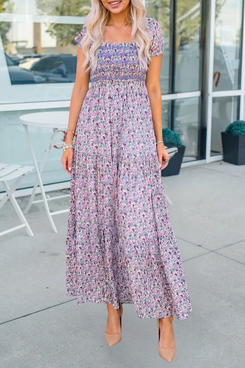 Floral Shirred High Waist Maxi Dress