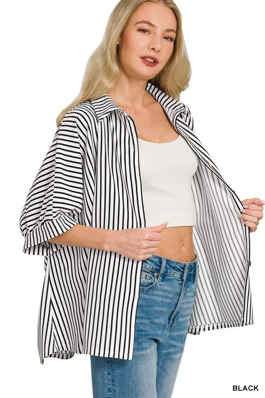 Oversized Stripe Button Down Shirt